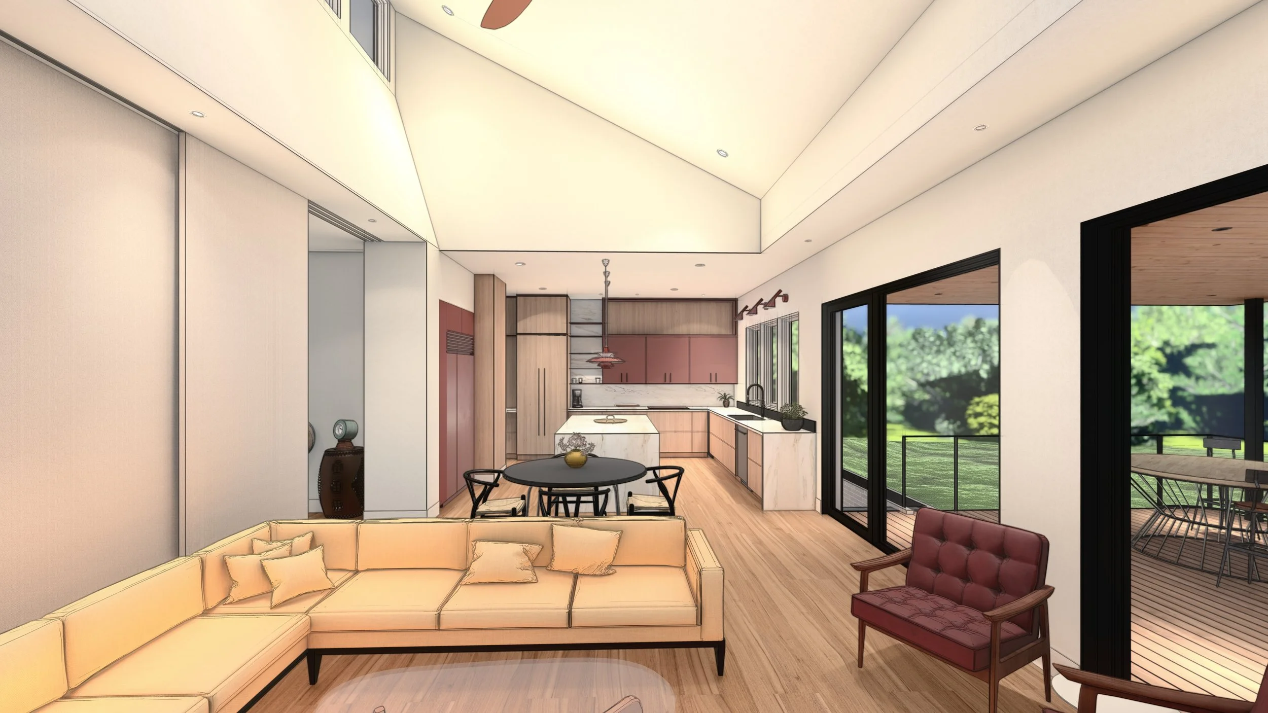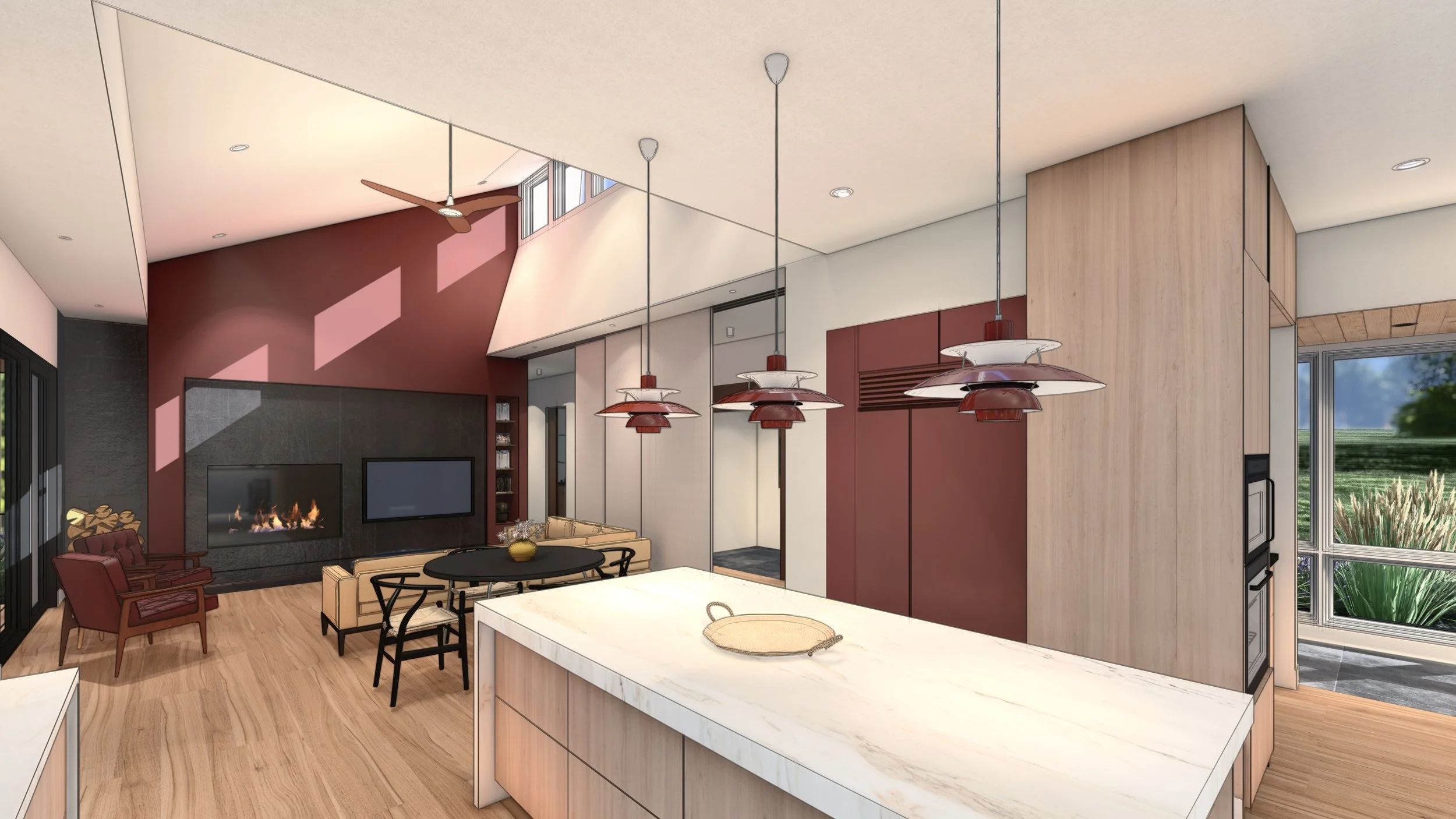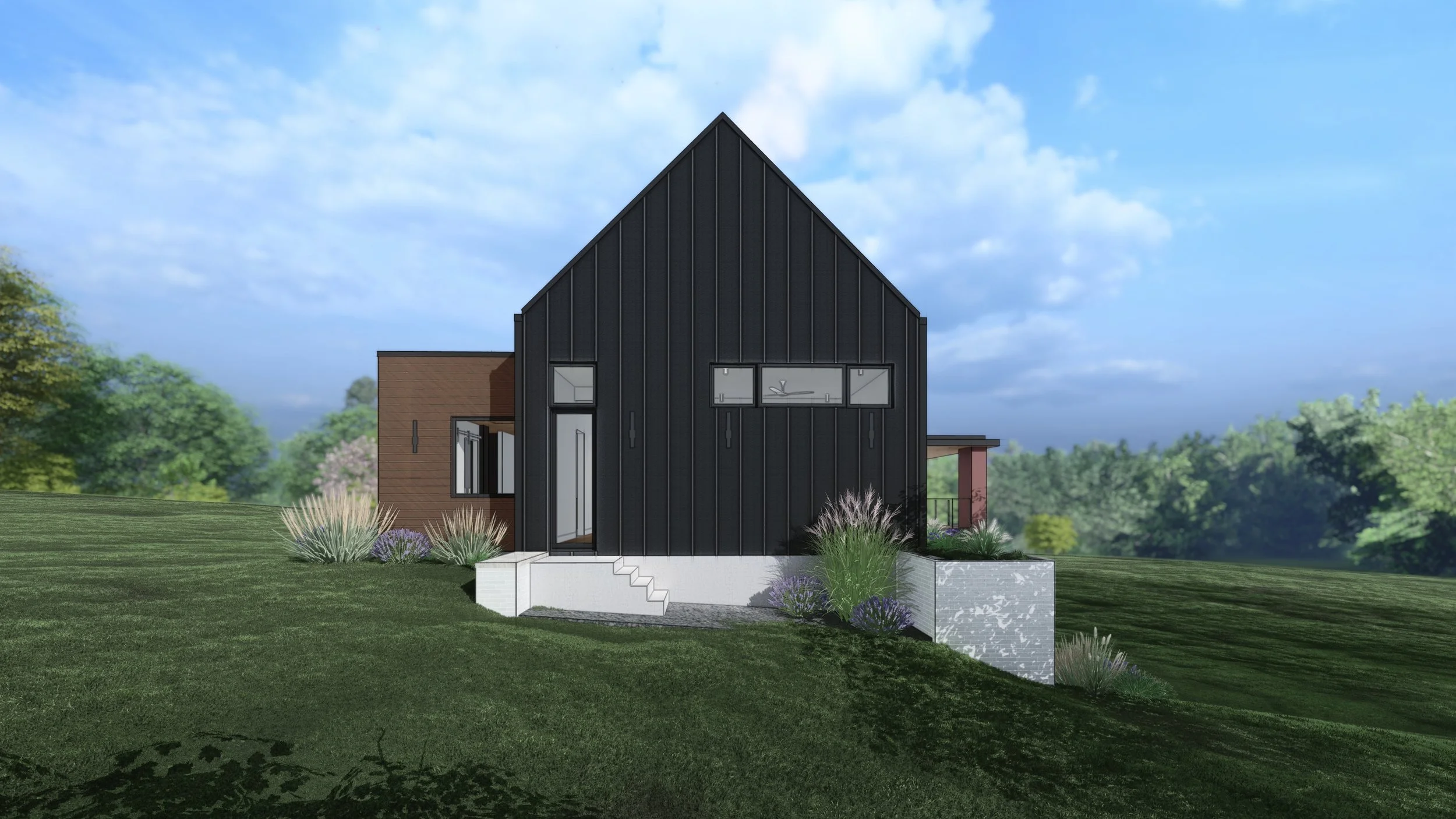 Set on a quiet acreage just outside of town, this residence was envisioned as a contemporary interpretation of the rural farmhouse—designed to support the creative lifestyle of two local artists. The clients sought a long-term residence that could evolve with their personal and professional lives, blending everyday living with artistic production. The opportunity was to create a custom home that reflects their values of sustainability, functionality, and creative expression, while offering a timeless and adaptable environment rooted in the rural landscape.